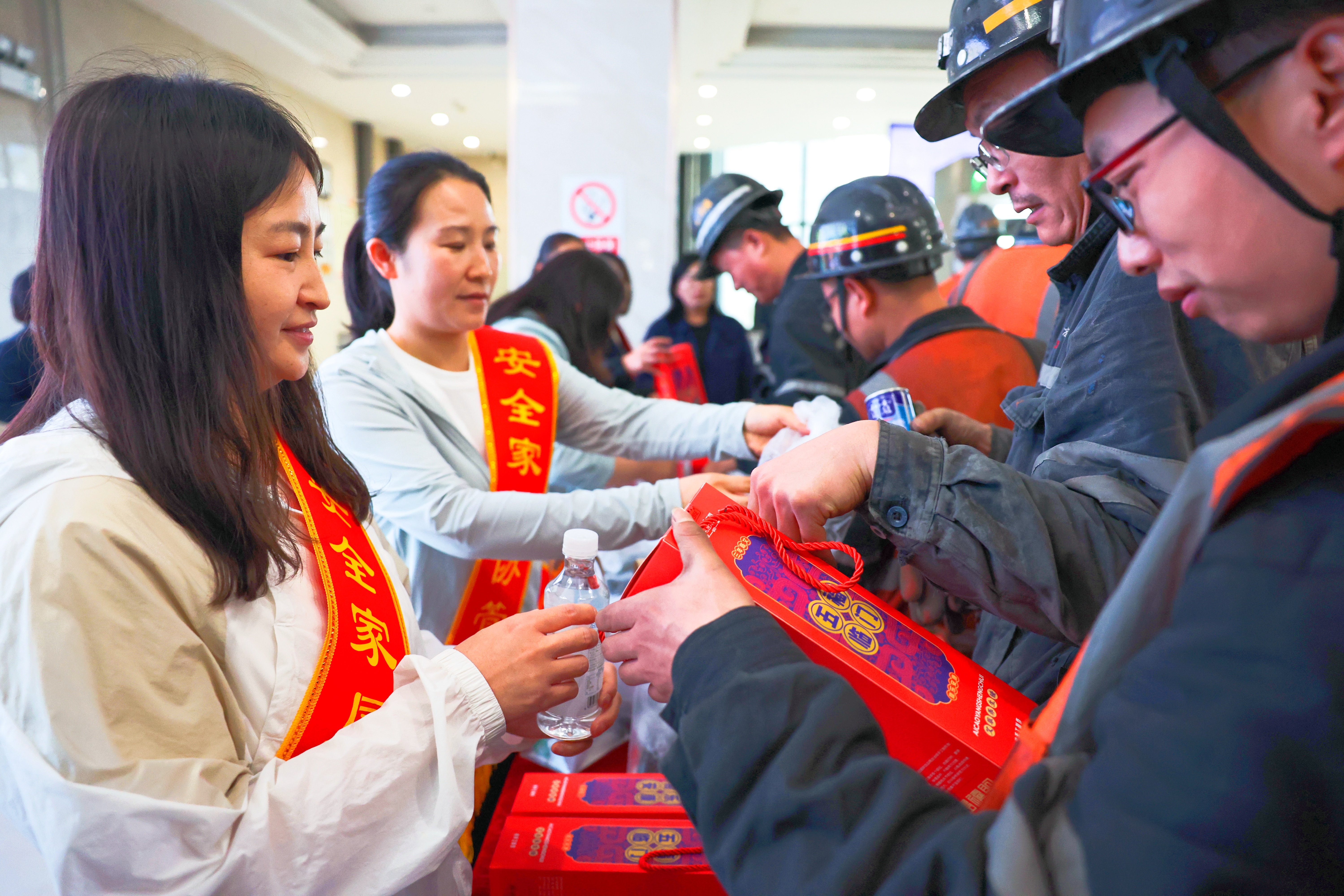 在井口活動現場,家屬協管員給早班升井職工和中班入井職工分別送上香甜的粽子、蘋果、香蕉和飲料等慰問品,以及象征“健康”的艾草飾品等,部分家屬為自己的老公戴上“幸運五彩繩”,寓意著幸福與安康。“老公,你辛苦了”“老公,工作時一定要注意安全”“同志,一定要注意安全駕駛”……一句句囑托、一聲聲祝福,讓現場的每一個角落充滿了愛和溫暖。