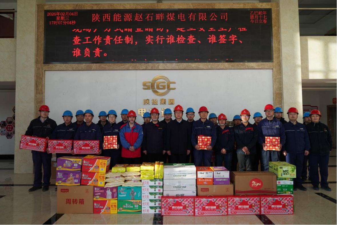 2月4日,陜西能源副總經(jīng)理,趙石畔煤電黨委書記、董事長(zhǎng)王學(xué)民,趙石畔煤電總經(jīng)理、副總經(jīng)理(分管生產(chǎn))、工會(huì)主席、總工程師一行,到電力運(yùn)營(yíng)趙石畔項(xiàng)目部,慰問項(xiàng)目部一線員工,向全體員工提前送去新春祝福。