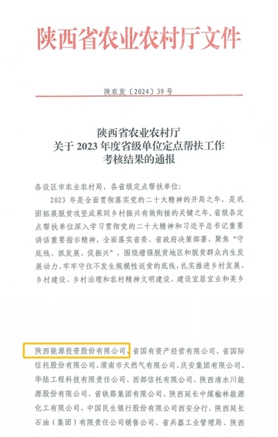 近日,2023年度省級單位定點幫扶工作考核等次名單公布,陜西能源鄉村振興定點幫扶工作連續三年被評定為最高等次“好”的評價。