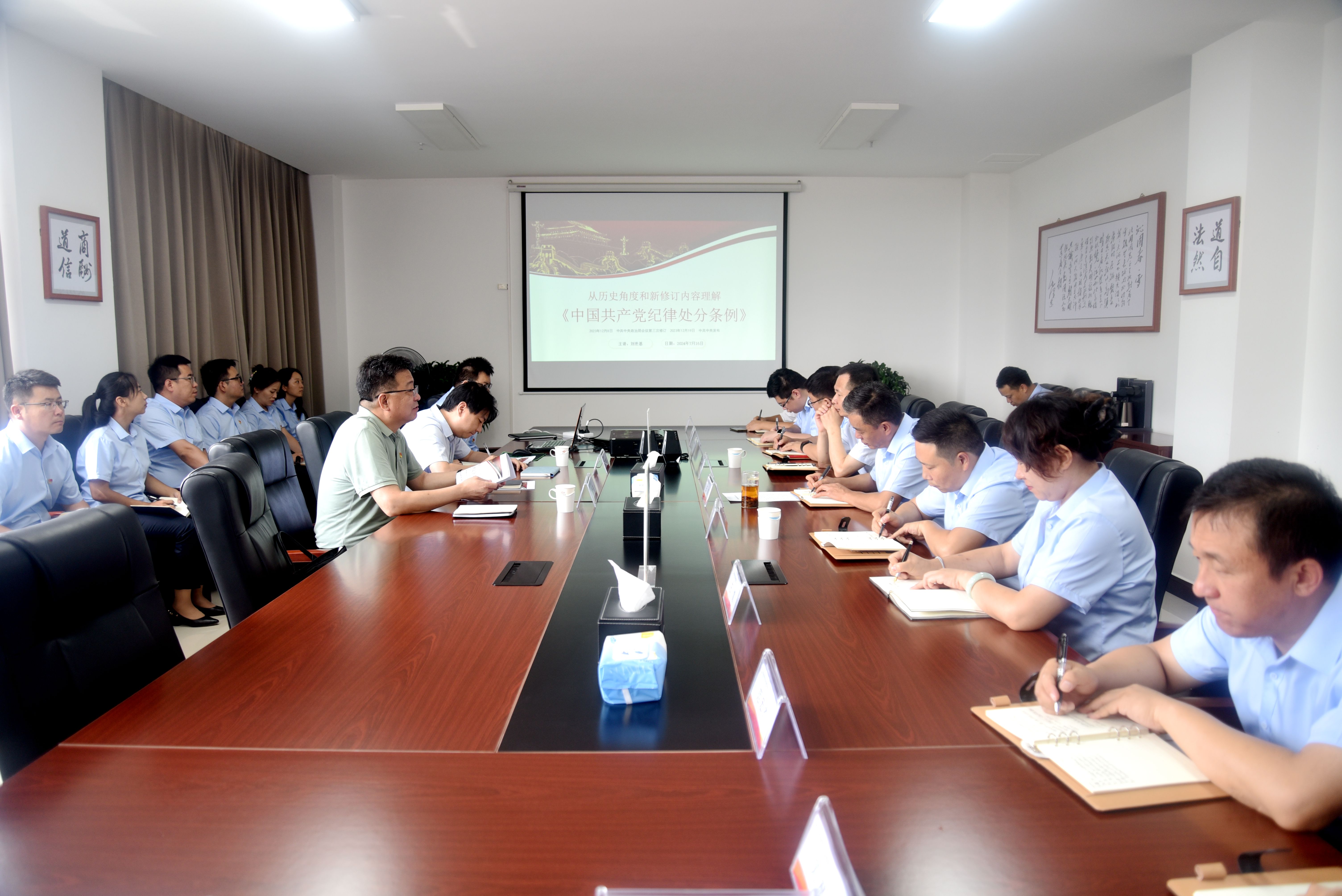 課上,劉世基以“從歷史角度和新修訂內容理解《中國共產黨紀律處分條例》”為題,從“從歷史的角度認識黨紀建設”“全面貫徹習近平新時代中國特色社會主義思想和黨的二十大精神”“學紀 知紀 明紀 守紀  牢牢把握《條例》的“六大紀律”等六個方面對如何更好地落實黨紀學習教育作了深入淺出的講解。黨課內涵豐富、條理清晰、分析透徹,具有很強的理論性、針對性和指導性,使公司黨員干部對黨紀學習教育有了更多更深刻的收獲和認識。