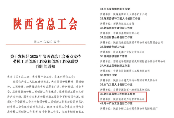 近日,電力運(yùn)營“趙紅喜勞模工匠創(chuàng)新工作室”成功獲評(píng)2025年陜西省總工會(huì)重點(diǎn)支持勞模工匠創(chuàng)新工作室,并獲3萬元專項(xiàng)資金支持。