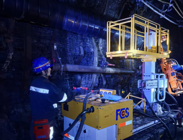 本輪次實(shí)施的頂板深孔爆破作業(yè)針對(duì)井下深部堅(jiān)硬巖層難破斷、常規(guī)卸壓手段治理效果差等技術(shù)難題開(kāi)展。為確保安全高效作業(yè),公司多次組織召開(kāi)專題會(huì),相關(guān)單位協(xié)同聯(lián)動(dòng),不斷優(yōu)化完善爆破作業(yè)方案;在作業(yè)前對(duì)全體參與人員進(jìn)行詳細(xì)的安全技術(shù)交底,對(duì)鉆機(jī)、裝藥車(chē)、注漿泵等設(shè)備全面檢修測(cè)試;作業(yè)期間持續(xù)優(yōu)化施工參數(shù),制定安裝集氣罩和氣體攔截裝置等防止有害氣體外溢的應(yīng)急防范措施,安排專人緊盯鉆孔裝藥、注漿封孔等爆破關(guān)鍵環(huán)節(jié),為爆破作業(yè)筑起了堅(jiān)實(shí)的技術(shù)與安全防線。