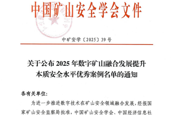 涼水井礦業(yè)一項(xiàng)目入選2025年數(shù)字礦山融合發(fā)展提升本質(zhì)安全水平優(yōu)秀案例