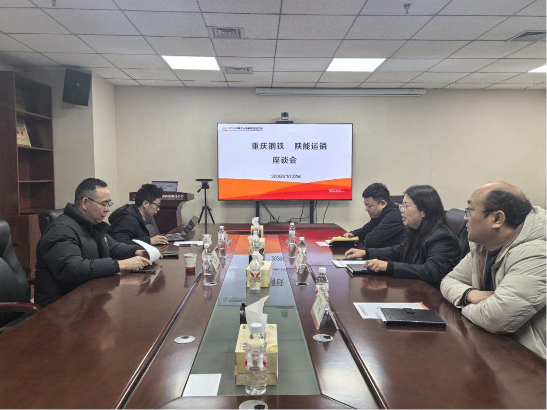 1月22日,陜能運銷與重慶鋼鐵在西安開展交流座談,雙方就深化煤炭供需領域合作、保障供應鏈穩定等議題展開深入交流。重慶鋼鐵營銷中心采購部副部長楊華,陜能運銷黨總支副書記、總經理參加座談。