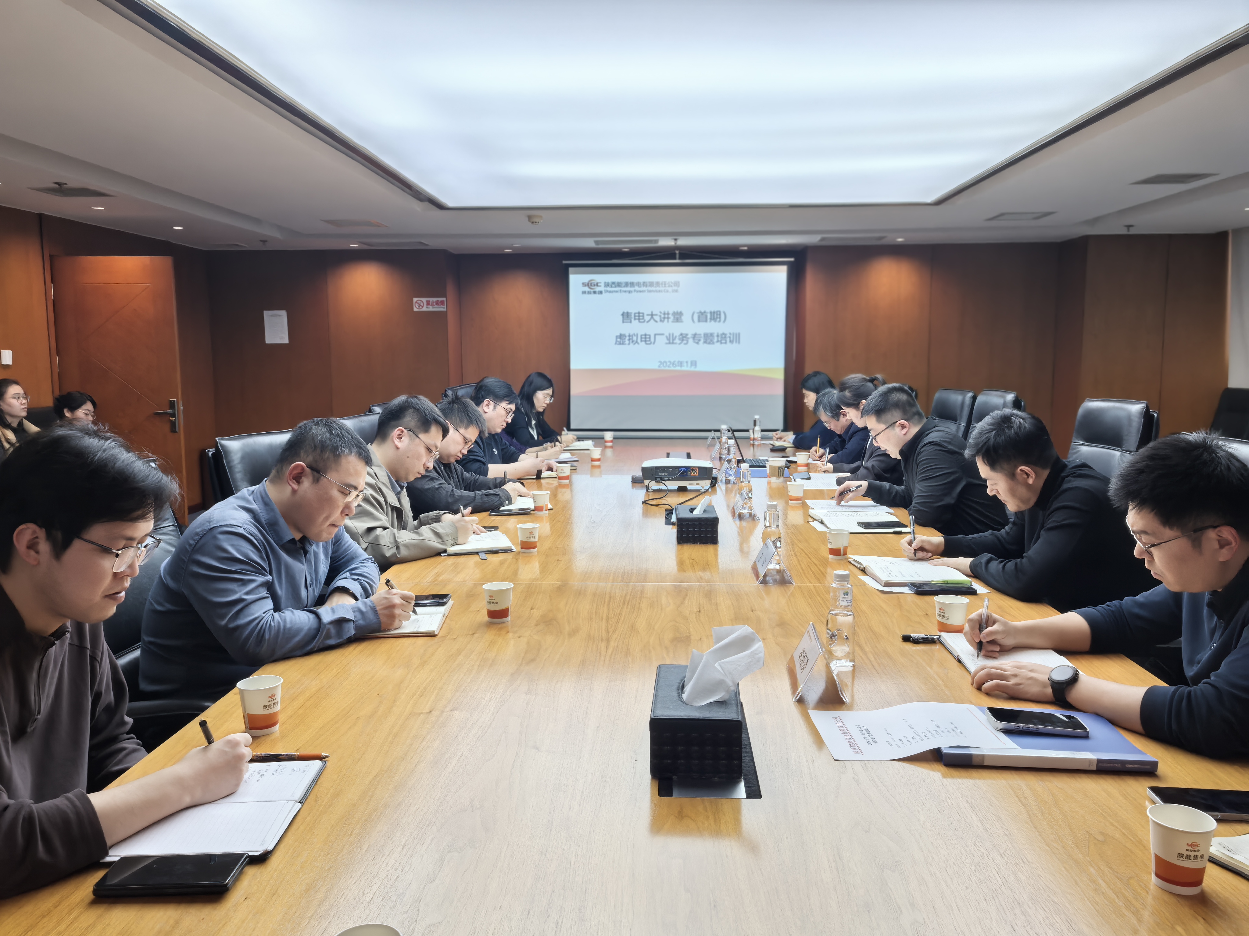 1月29日,陜能售電成功舉辦2026年第一期“售電大講堂”專題培訓,公司全體員工參加本次學習交流活動。此次培訓聚焦虛擬電廠業務這一行業熱點,標志著陜能售電在智慧能源領域布局邁出了堅實的步伐。