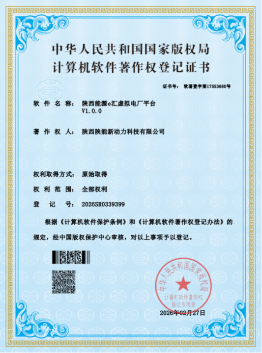 近日,能動科技成功獲得“陜西能源e匯虛擬電廠平臺V1.0.0”計算機(jī)軟件著作權(quán)登記證書。這是繼“陜投集團(tuán)充換電智慧運營管理平臺V1.0.5”“智慧充換電服務(wù)小程序V1.0.0”等軟件著作權(quán)之后,能動科技在新能源數(shù)智化領(lǐng)域取得的第六項軟件核心成果。