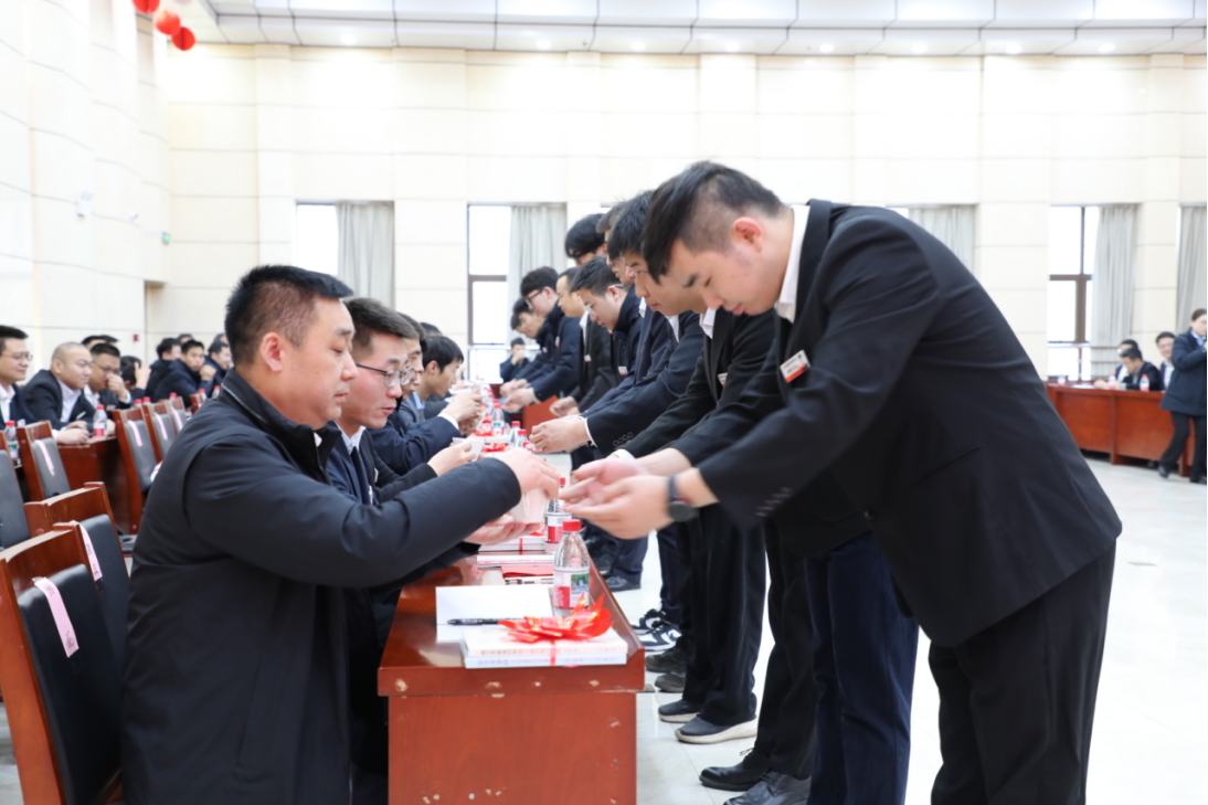 在全場目光聚焦下,4對師徒代表依次上臺,鄭重簽訂《師帶徒協議》,一筆一畫承載著師傅傾囊相授的責任,更凝聚著徒弟虛心求教的初心。拜師禮環節,徒弟代表恭敬地向師傅敬茶,一聲“師傅,請喝茶”道出濃濃敬意;師傅向徒弟回贈專業書籍,寄予成長成才的殷切期望;徒弟向師傅行三鞠躬禮,以傳統禮儀詮釋尊師重道的真摯心意,簡單的儀式里,滿是深厚的師徒情誼和匠心傳承的溫度