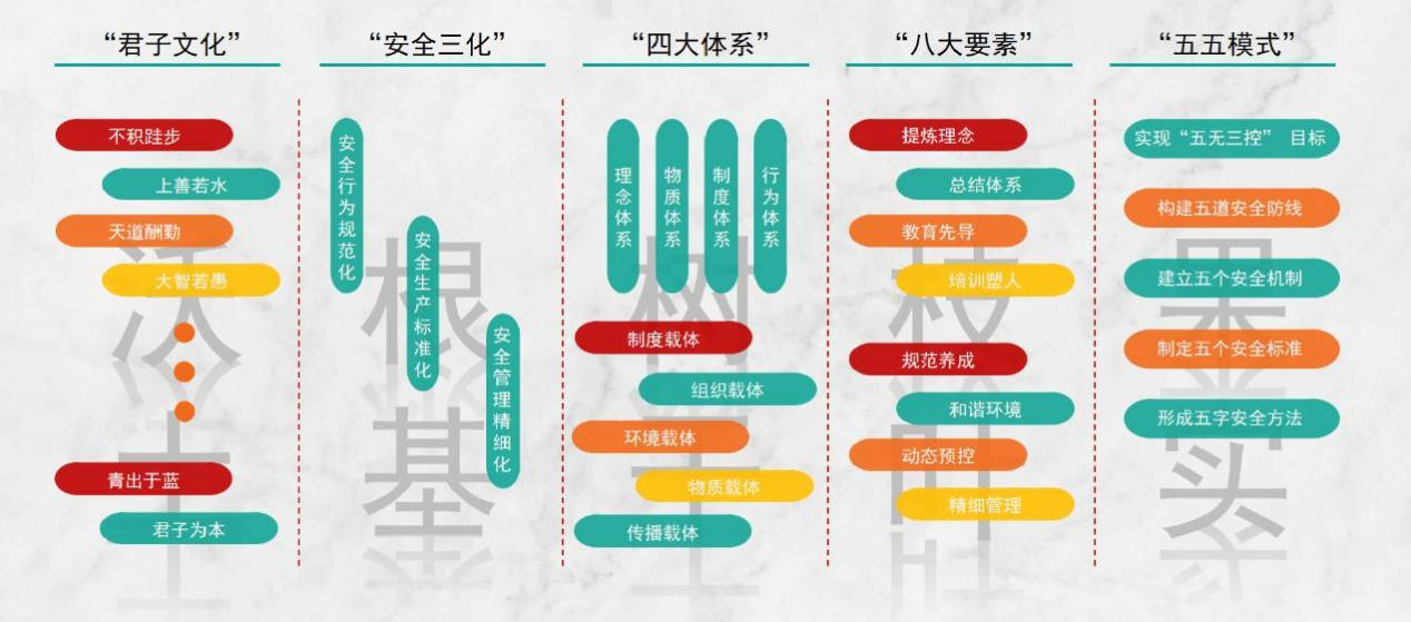 趙石畔煤電公司自2018年起創(chuàng)建特色“知·行”安全文化,從頂層設(shè)計(jì)層面提出了以“植于心、踐于行、立于預(yù)、安于本”為核心安全理念,以“安全三化”為根基,以“四大體系”為樹干,以“八大要素”為枝葉,以“五五模式”為果實(shí),以“君子文化”為陽(yáng)光雨露的“知·行”安全文化建設(shè)模式。在安全文化基層落地的過(guò)程中,經(jīng)過(guò)幾年實(shí)踐,又逐步形成了“從思安到行安”的雙模式實(shí)踐體系。