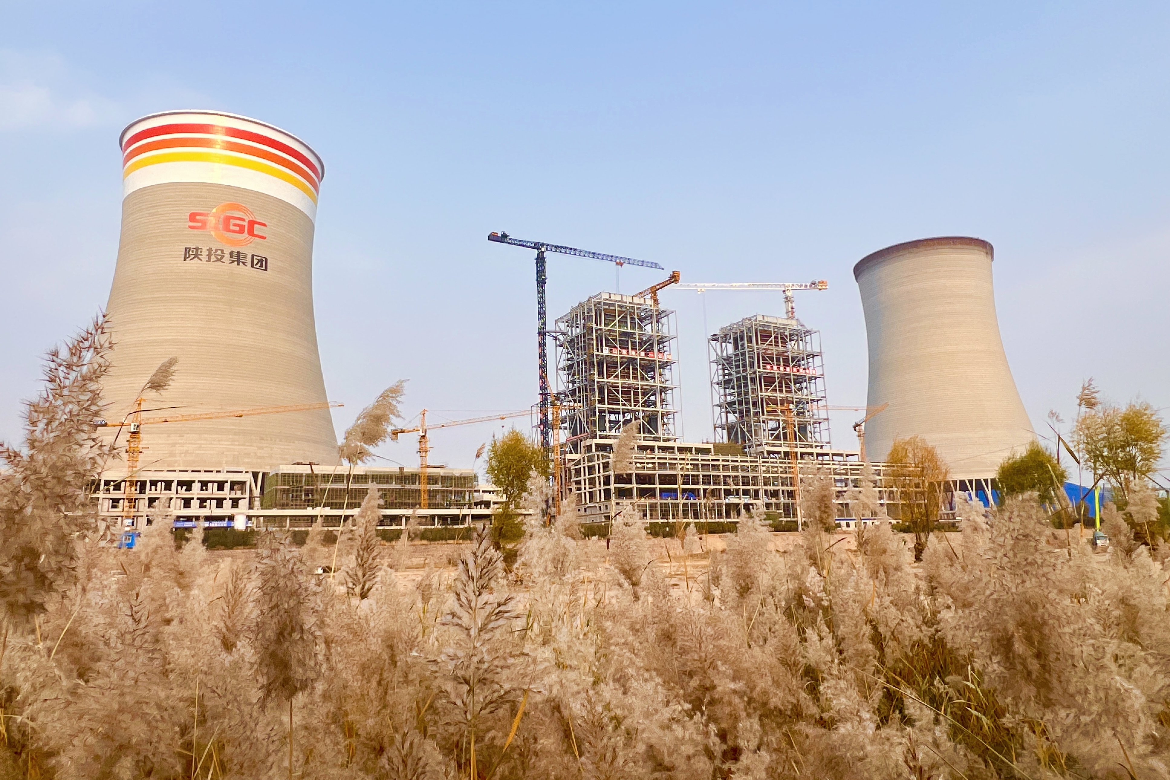 6號間冷塔采用一機一塔間接空冷“四塔合一”方案,筒壁為雙曲線鋼筋混凝土結構,塔高206米,出口直徑95.8米,喉部直徑90米,零米環板直徑163米,進風口標高32米。自2021年8月5日開工,歷時450天實現到頂目標。