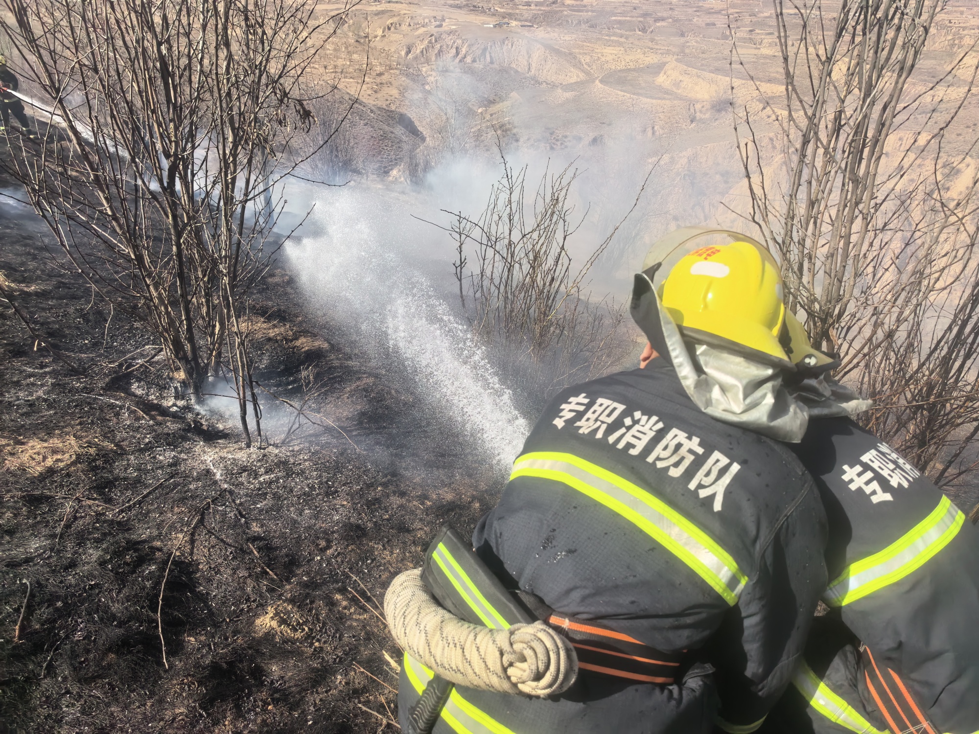 近日,趙石畔運營礦山救護消防隊接到橫山區消防救援大隊派警緊急求助:附近突發山火,因大風天氣,火勢蔓延較快,要求立即出動,協助滅火。