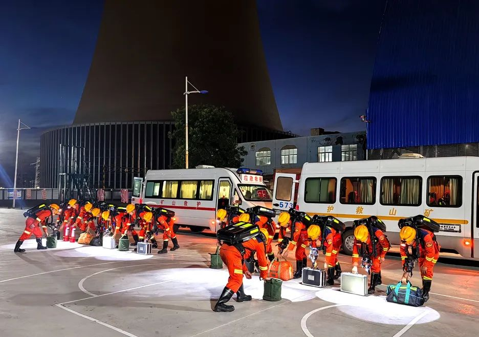 警鈴聲劃破夜空的瞬間,救護(hù)隊(duì)值班室燈光驟亮。值備班隊(duì)員1分鐘內(nèi)完成救護(hù)車出庫(kù),行車途中同步穿戴戰(zhàn)斗服,抵達(dá)模擬險(xiǎn)情區(qū)域后,立即開(kāi)展氧氣呼吸器自檢互檢、水災(zāi)救援裝備清點(diǎn)等戰(zhàn)前檢查、入井準(zhǔn)備工作。此次演練模擬井下某掘進(jìn)工作面突發(fā)透水場(chǎng)景,重點(diǎn)考核夜間通訊聯(lián)絡(luò)、裝備精準(zhǔn)操作、水情偵察定位等實(shí)戰(zhàn)科目。黑暗環(huán)境中,救護(hù)小隊(duì)依托頭燈照明協(xié)同作業(yè),從險(xiǎn)情研判到戰(zhàn)術(shù)運(yùn)用環(huán)環(huán)相扣,充分展現(xiàn)了“召之即來(lái)、來(lái)之能戰(zhàn)”的應(yīng)急素養(yǎng)。