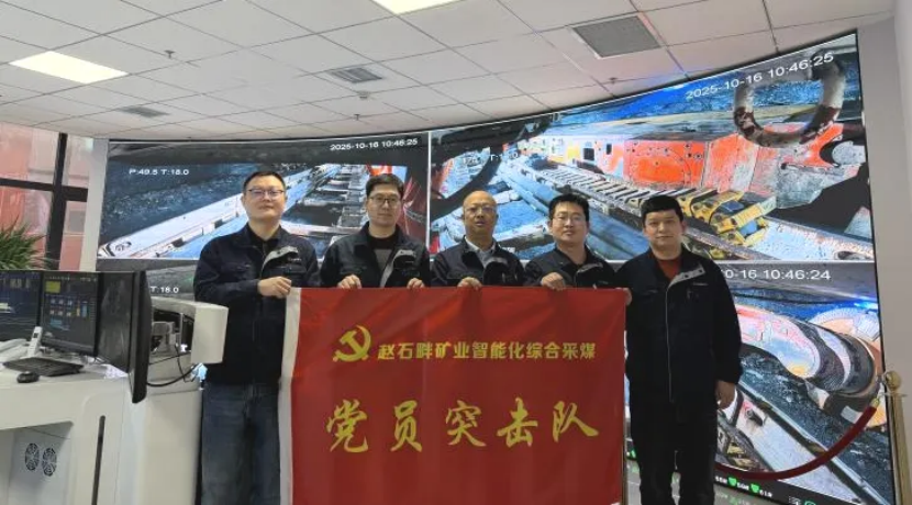 在趙石畔運(yùn)營聯(lián)合試運(yùn)轉(zhuǎn)的攻堅(jiān)戰(zhàn)場(chǎng)上,井下綜采工作面與地面綜采分控中心遙相呼應(yīng),一面“趙石畔運(yùn)營智能化綜合采煤黨員突擊隊(duì)”的旗幟始終高高飄揚(yáng)。他們錨定“保障試運(yùn)轉(zhuǎn)高效、安全、達(dá)標(biāo)”的目標(biāo),以實(shí)干作風(fēng)扛起攻堅(jiān)重任,以智慧開采賦能生產(chǎn)技術(shù),為聯(lián)合試運(yùn)轉(zhuǎn)注入強(qiáng)勁“紅色動(dòng)能”與“智慧活力”。